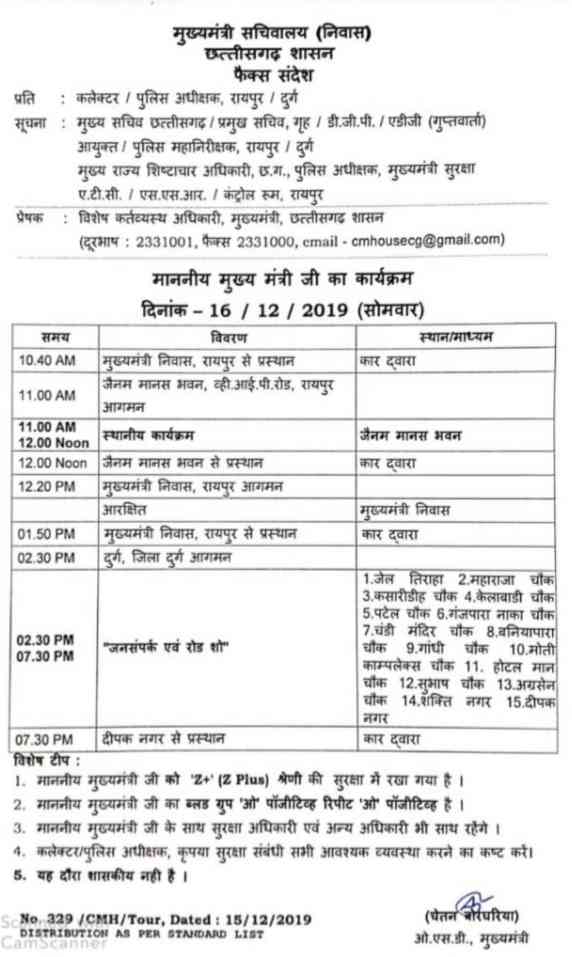 दुर्ग.16/12/19. आज मुख्यमंत्री रोड शो और जनसम्पर्क दुर्ग कांग्रेस प्रत्याशियों के पक्ष में करेंगे मतदान करने की अपील की है. मुख्यमंत्री भूपेश बघेल आज दुर्ग कांग्रेस पार्षद के पद के प्रति प्रत्याशियों के लिए एक बड़ा रोड शो करने वाले है जो शहर के अलग-अलग मार्ग से गुजरेगी.